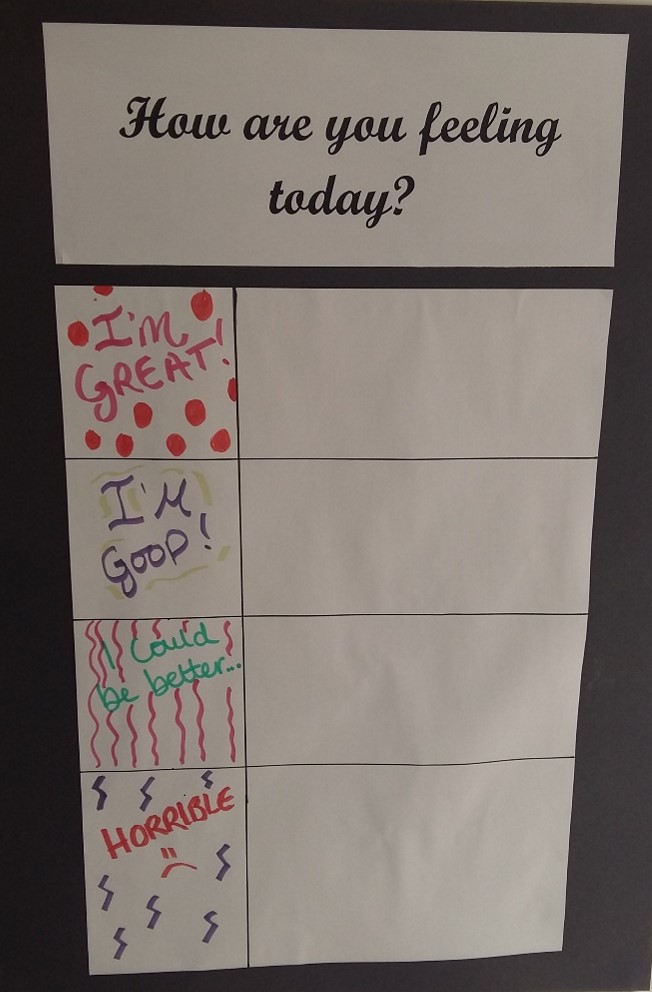 One teacher based in America created a wonderfully colourful ‘check in’ chart for her students. Each section of the chart has various phrases from ‘I’m great’ to ‘I’m not doing great’ and students are to place a post-it note in the area they associate with at the time. She uses this as a weekly check in on her students every Monday and has a chat about their past week. I thought this was a wonderful idea from this truly forward-thinking teacher. So why can’t we take note of our American brothers and sisters? I have adopted a similar (but not as wonderful) chart at the Academy. I then realised that students are often reluctant to talk about their feelings, but I want to try and change this. I have placed the chart in my office as I understand that it’s best to give some privacy to students who wish to talk about their day. I’m hoping that once they have spoken to someone about their issues or worries, they’ll feel confident enough to settle down to some learning. I am really hoping to incorporate this in the new academic term.